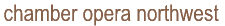 ![]() chamber opera northwestIn Memory of CHAMBER OPERA NORTHWEST, now in it's sixth season, on the roster of King Country 4 Culture since 2002, continues to bring innovative opera productions to the Pacific Northwest. It is our mission to make this rich and historic art form accessible to new and experienced audiences of all ages, through performance, education and outreach. We offer traditional works by Mozart or Puccini, contemporary Stravinsky and Leonard Bernstein, as well as works by Northwest composers. Our staged and costumed productions with piano accompaniment provide opportunities for Northwest audiences to enjoy a wealth of local talent. Our updated English-language version of The Impresario by Mozart was the first ever opera performance at the Seattle Fringe Festival.